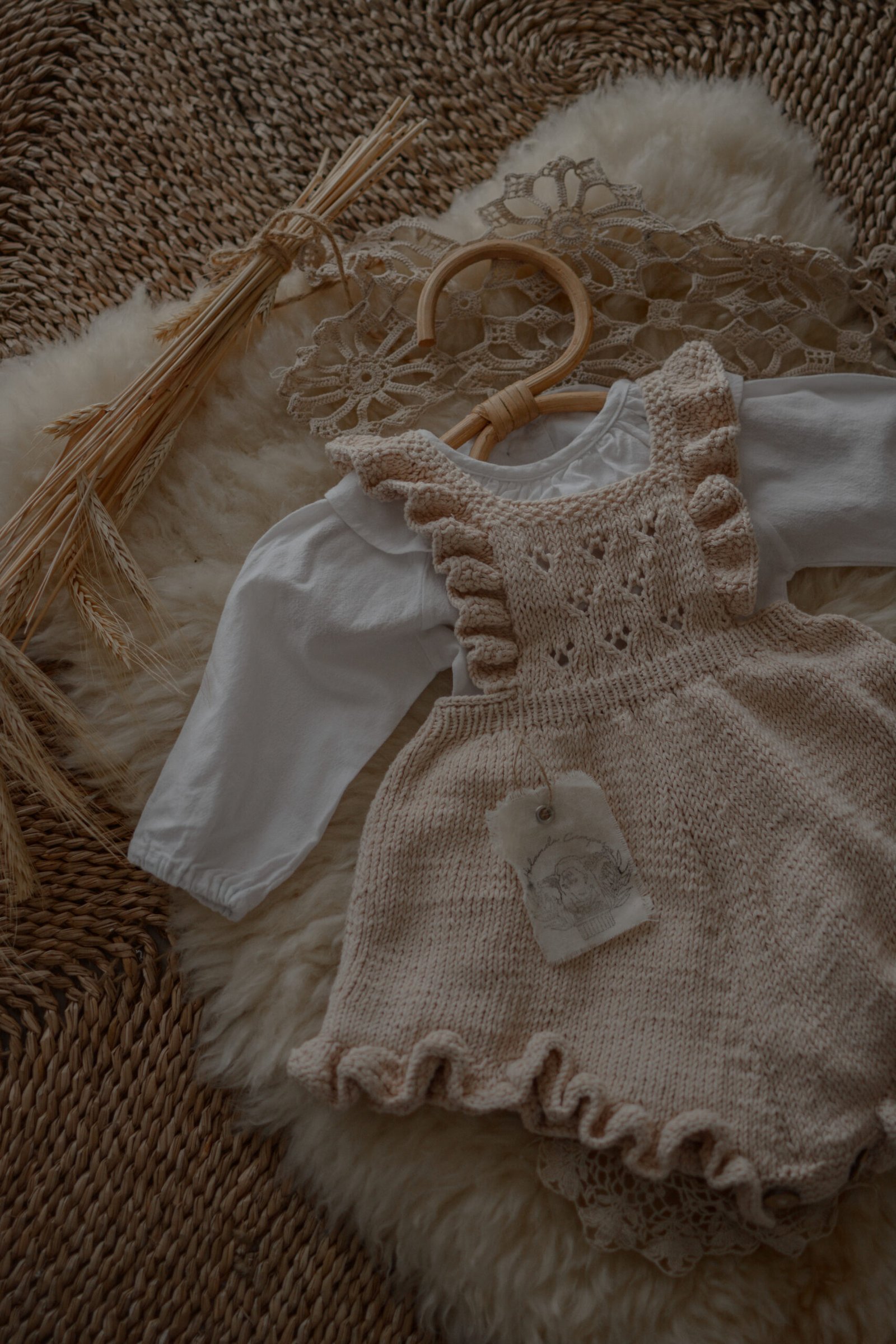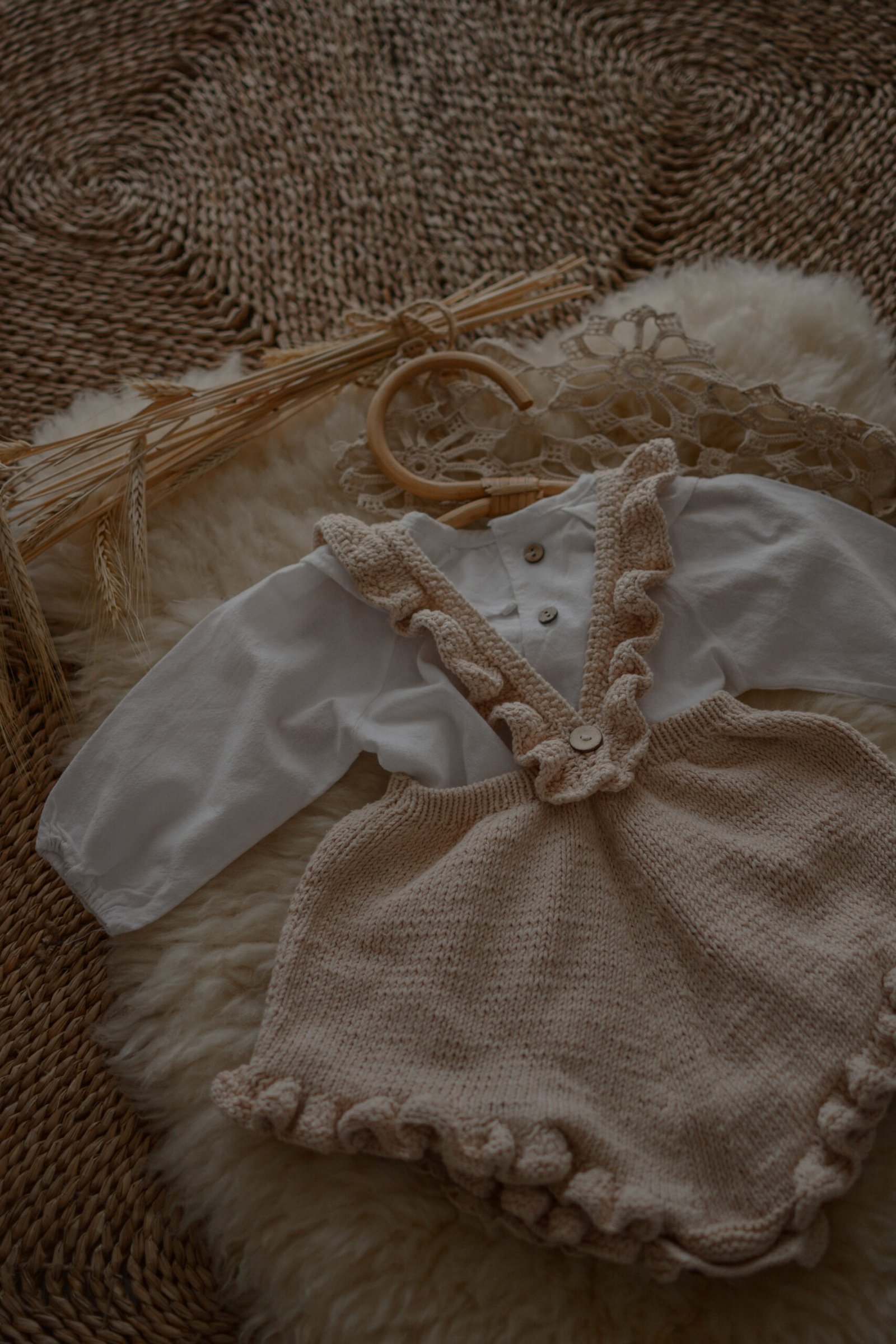 - Diseño Adorable con Detalles Únicos: Su pechera está tejida con un punto fantasía hermoso que le da textura y elegancia. Además, el body cuenta con volados delicados que le aportan un toque muy especial y juguetón, perfecto para cualquier ocasión.